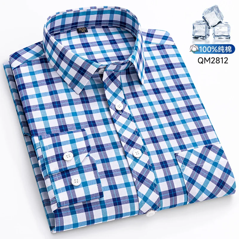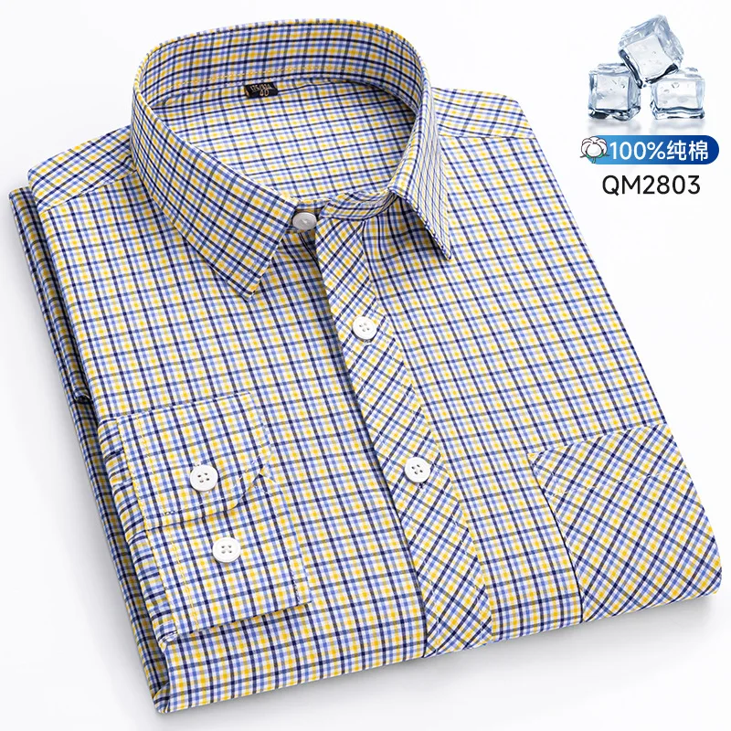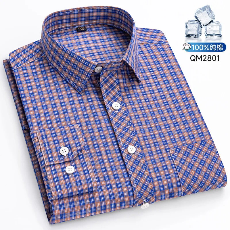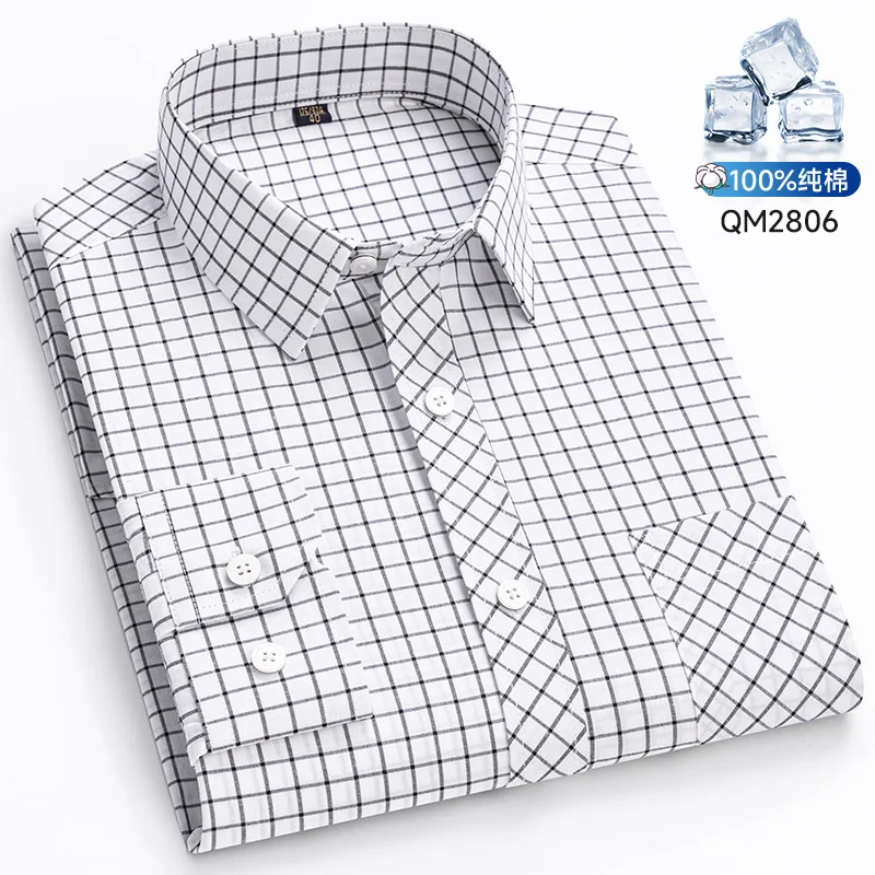 100% pure cotton men’s shirt with checkered long sleeves, business casual, high quality, no ironing, breathable and fashionable