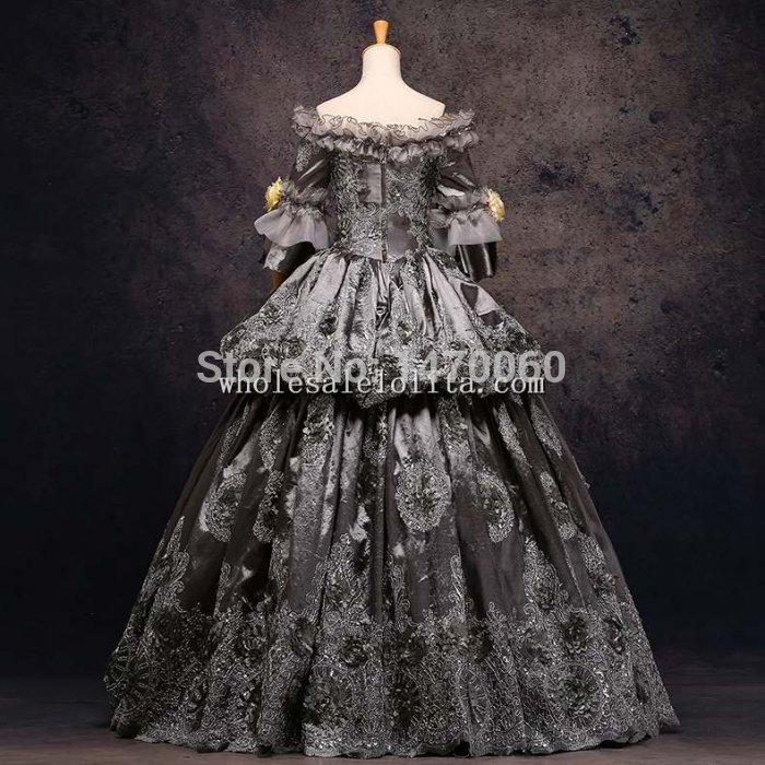 17 18th Century Marie Antoinette Gold Royal Court Embroidery Layered Dress Victorian Ball Gown Wedding Dress