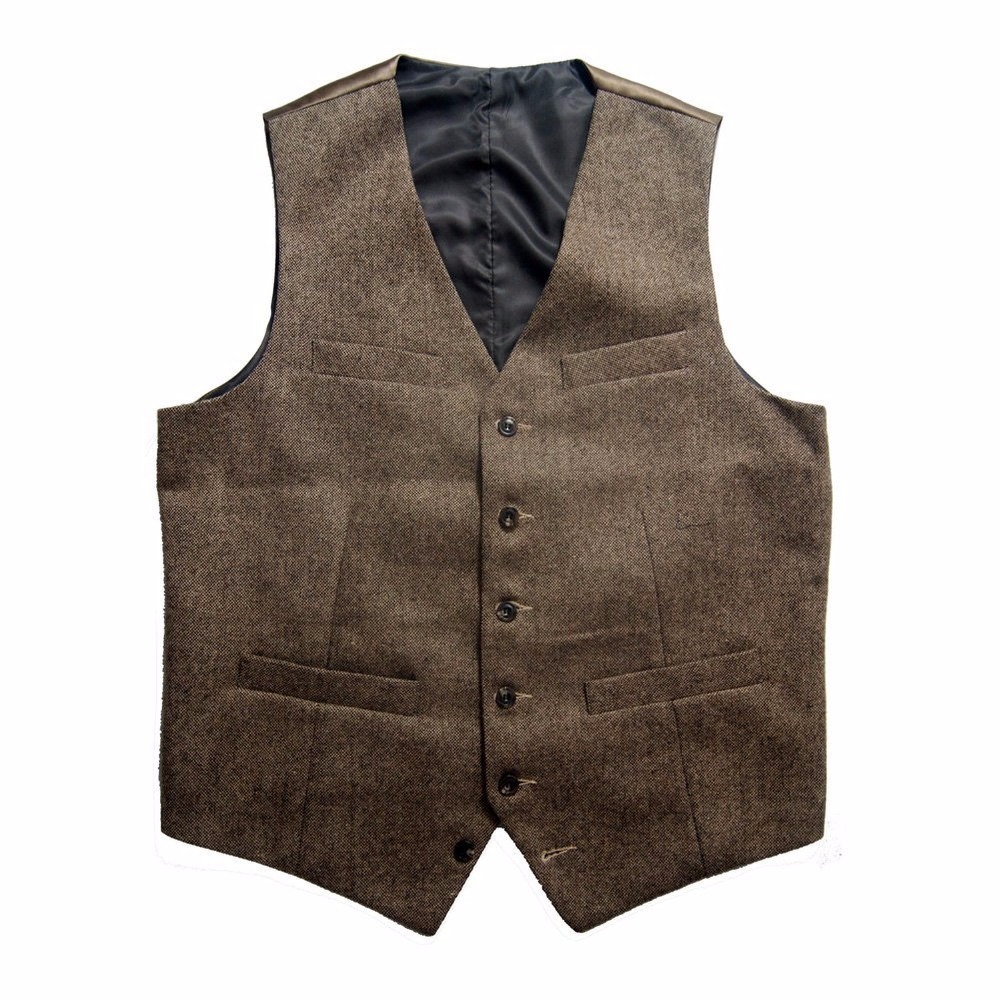 Usually We will use the Following 50% wool and 50% Cotton Brown Tweed Fabric to make this vests,and it can be use for summer weding/Autumn wedding,