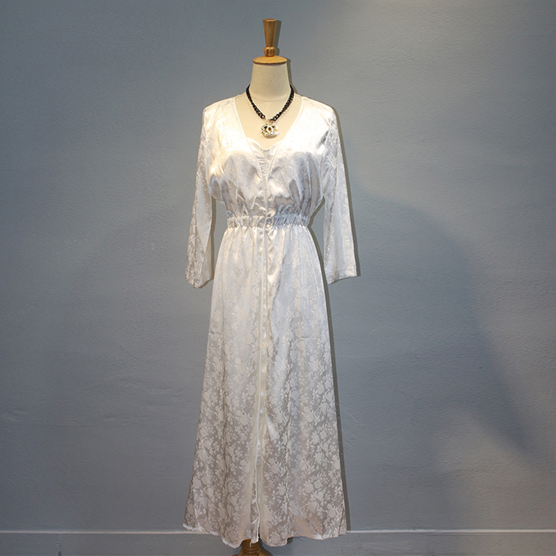 2020 High Quality Silk Sleepwear Women Long-sleeve Nightgown Two Pieces Set Queen Robe Dress Gorgeous Vestidos Sexy Lingerie