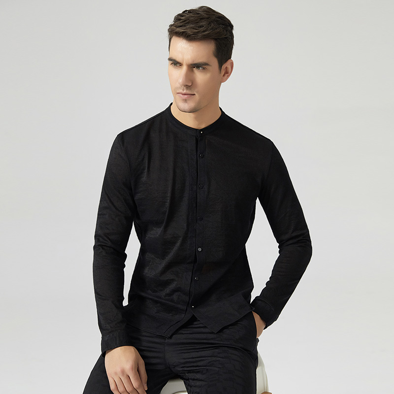 Be the first to review “2020 new style mens collarless shirts black fashion mens long sleeve dress shirts slim fit high quality”