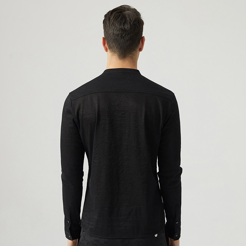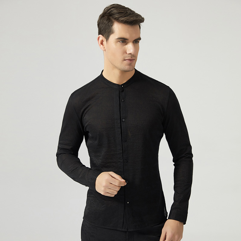 2020 new style mens collarless shirts black fashion mens long sleeve dress shirts slim fit high quality