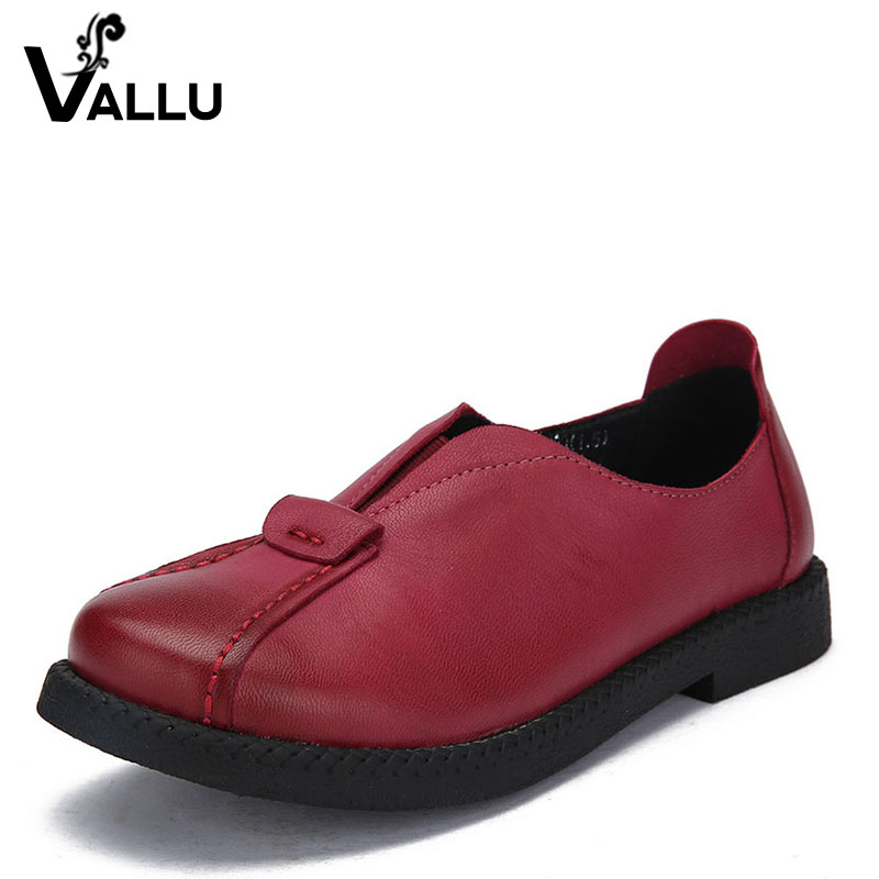 2020 VALLU Handmade Women Shoes Genuine Leather Flat Heels Round Toes Platform Women Flats Sheepskin Plus Size 41
