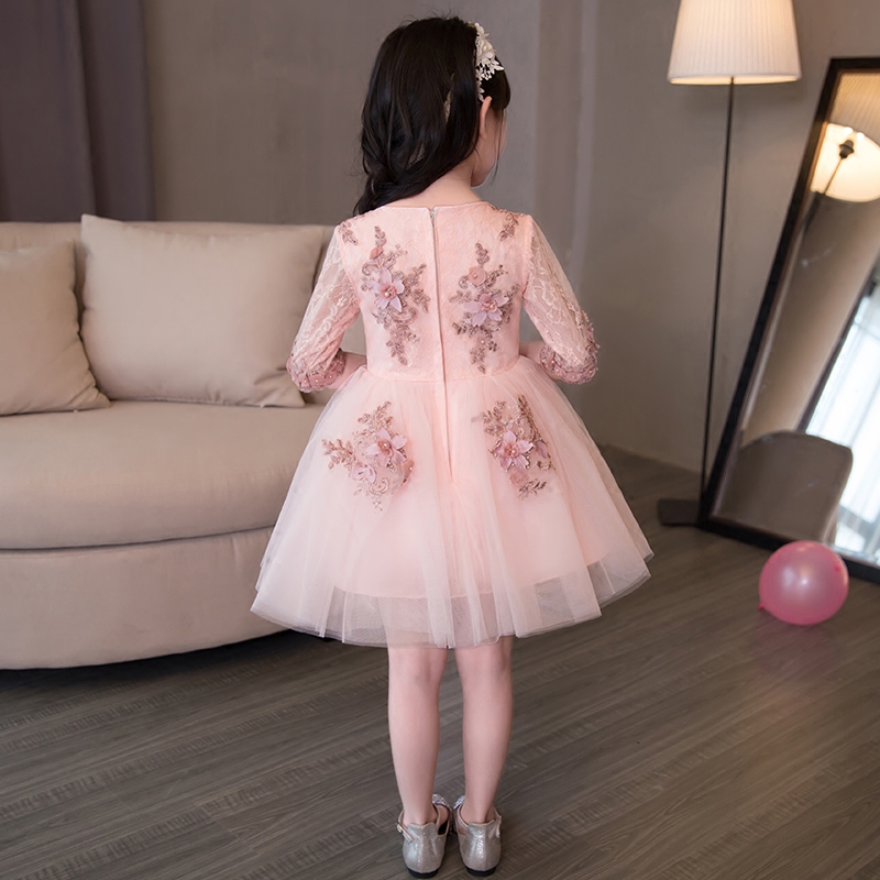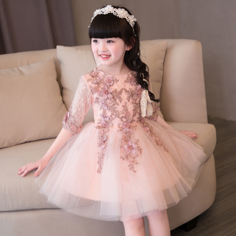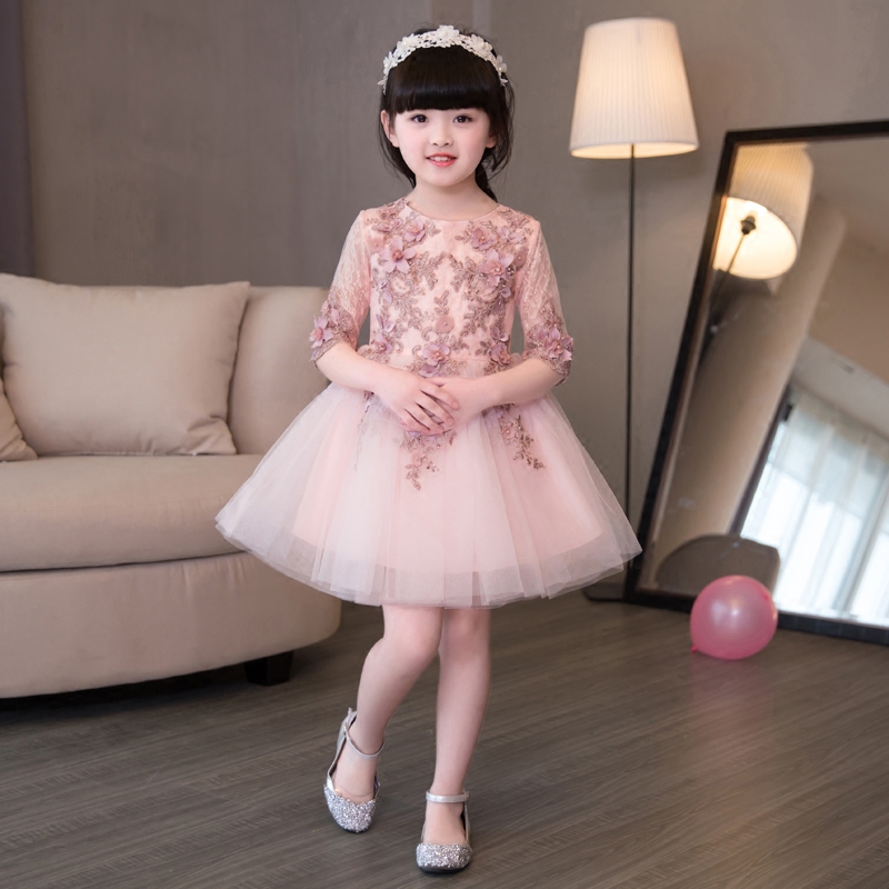 2020New Korean Formal Princess Costumes Party Dress Girl Kids Luxury Embroidery Lace Birthday Wedding Party Half Sleeves Dress