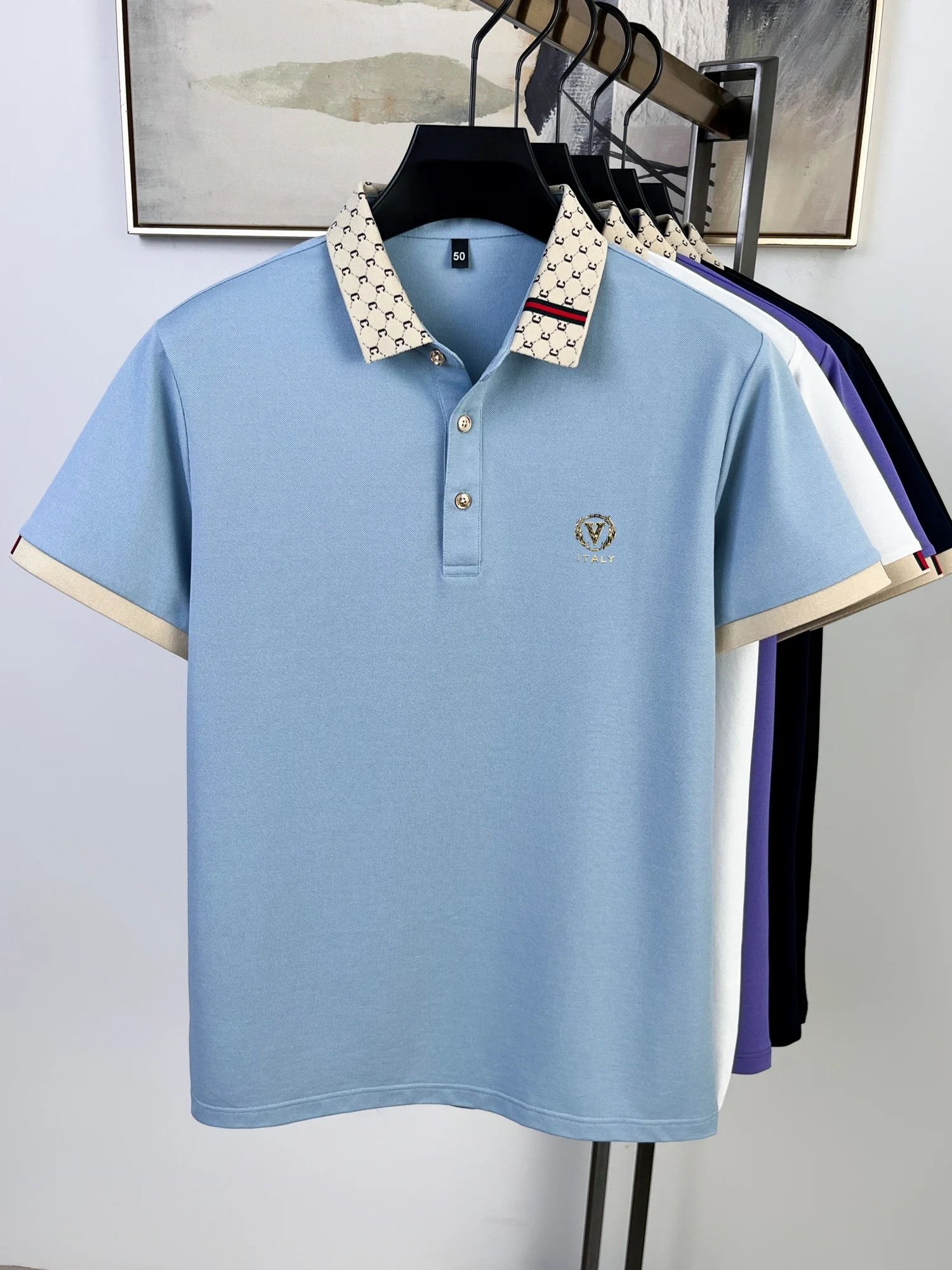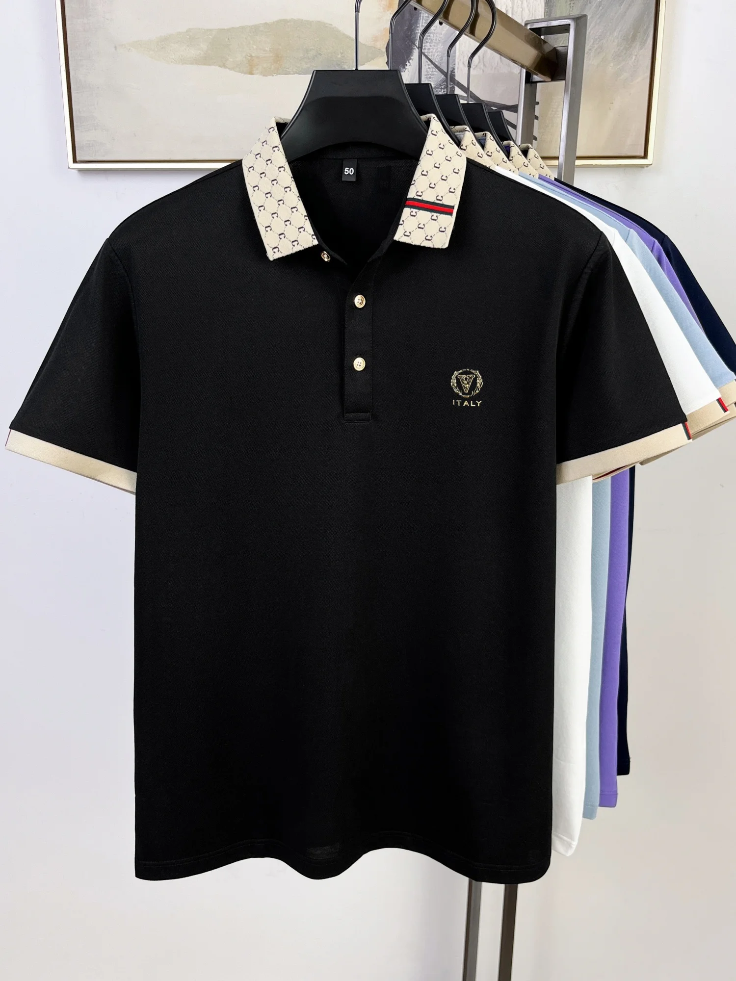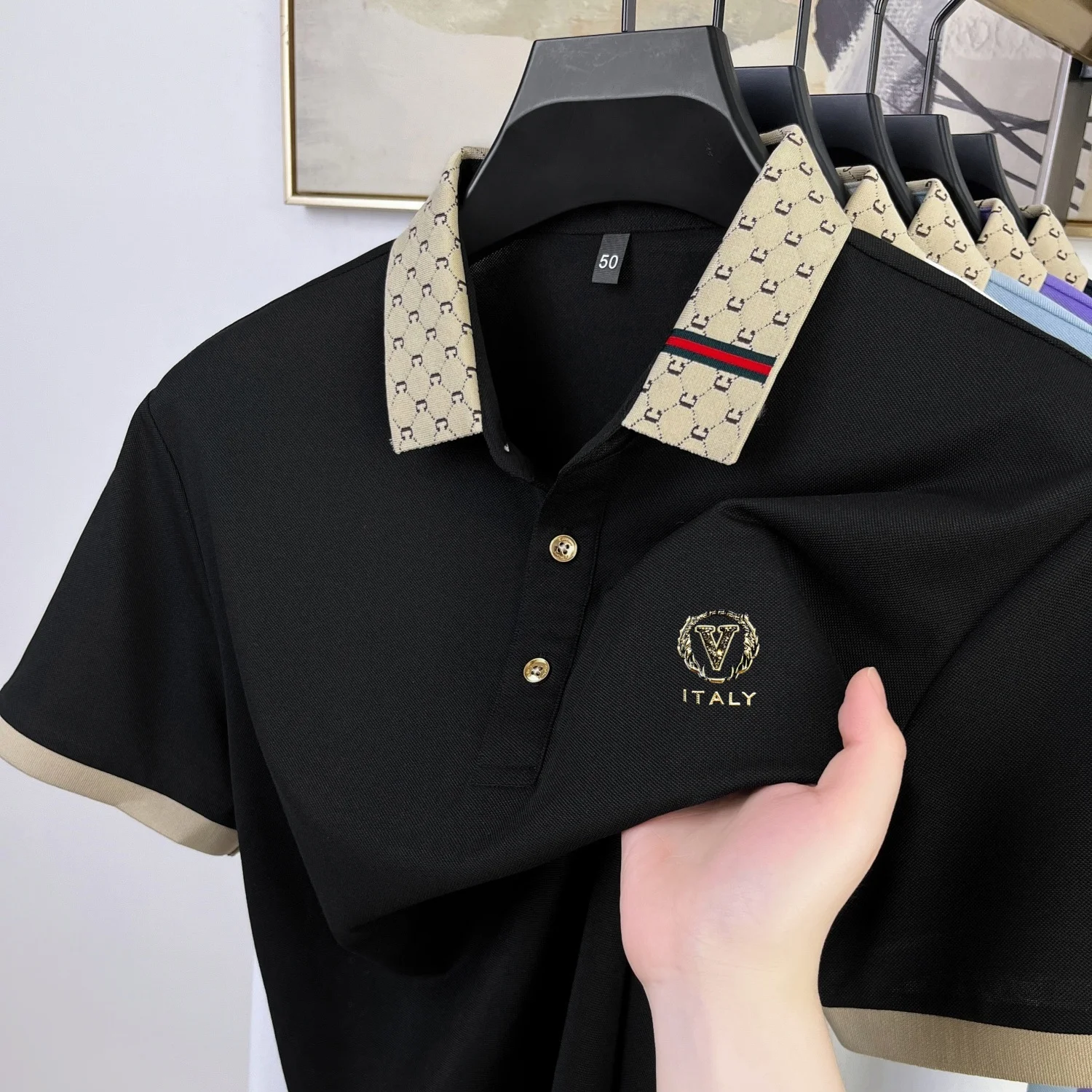2025 summer new men’s fashionable short sleeved business casual comfortable breathable polo shirt high-end designer exquisite ba