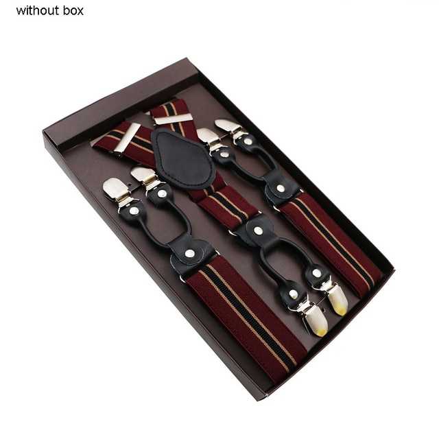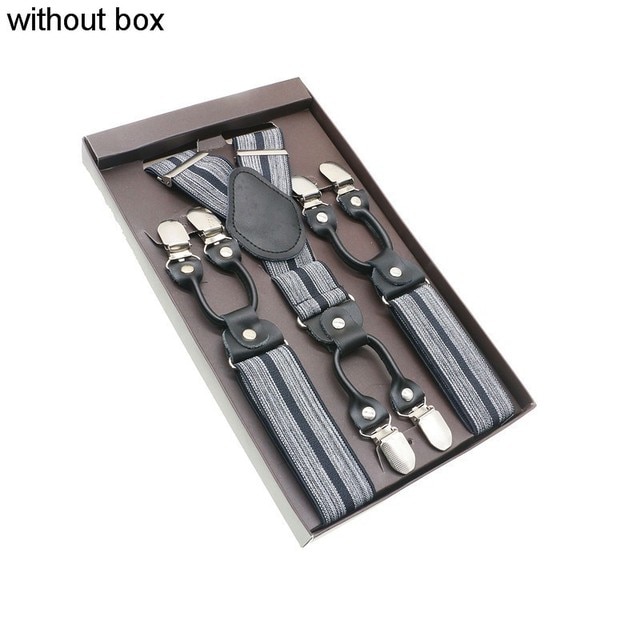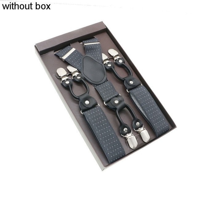 3.5*120cm Fashion Suspenders Genuine Leather 6 Clips Brace Male Vintage Casual Wedding Party Trousers Strap Husband's Gift