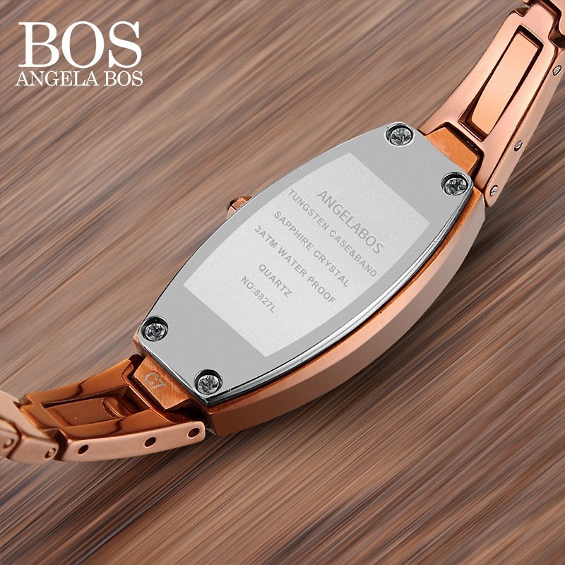 ANGELA BOS Luxury Tungsten Steel Sapphire Ladies Watch With Rhinestones 30m Shockproof Waterproof Watch Women Rose Gold Watch