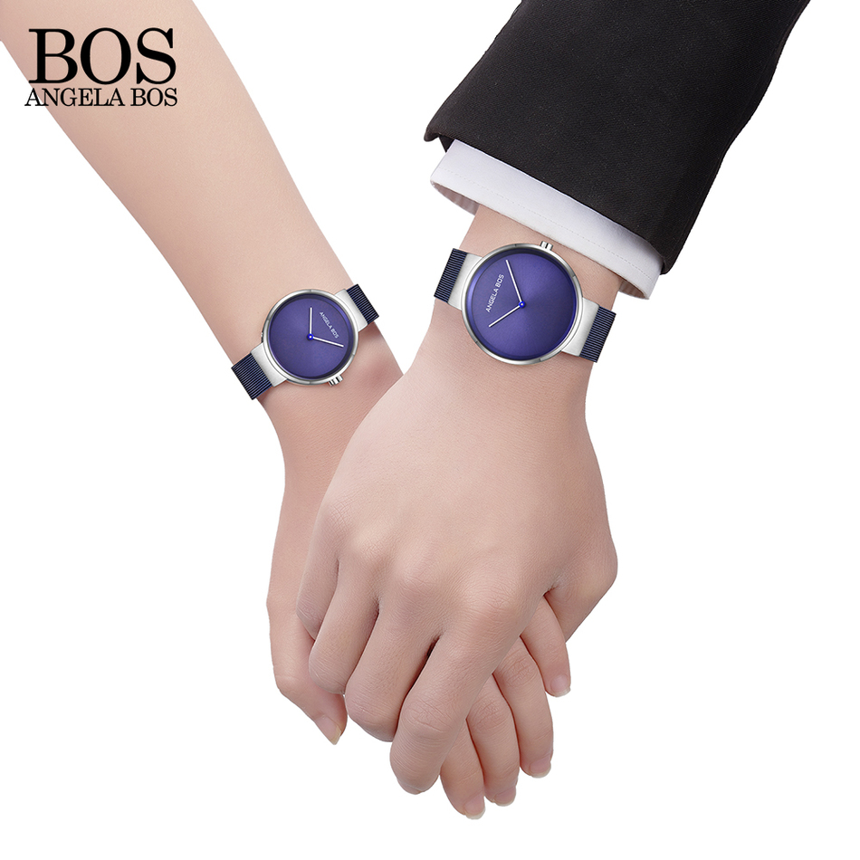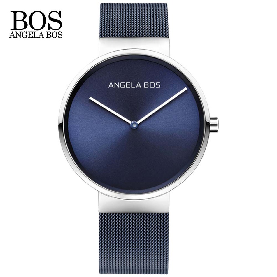 ANGELA BOS Ultra Thin Simple Nordic Design Watch Men Sapphire Weave Stainless Steel Waterproof Mens Watches Top Brand Luxury