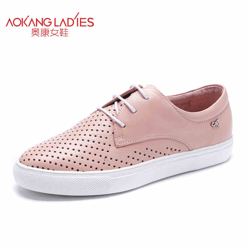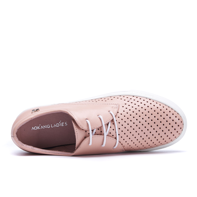 Aokang 2020 New arrival women flat genuine leather shoes red pink white women shoes breathable and soft free shipping