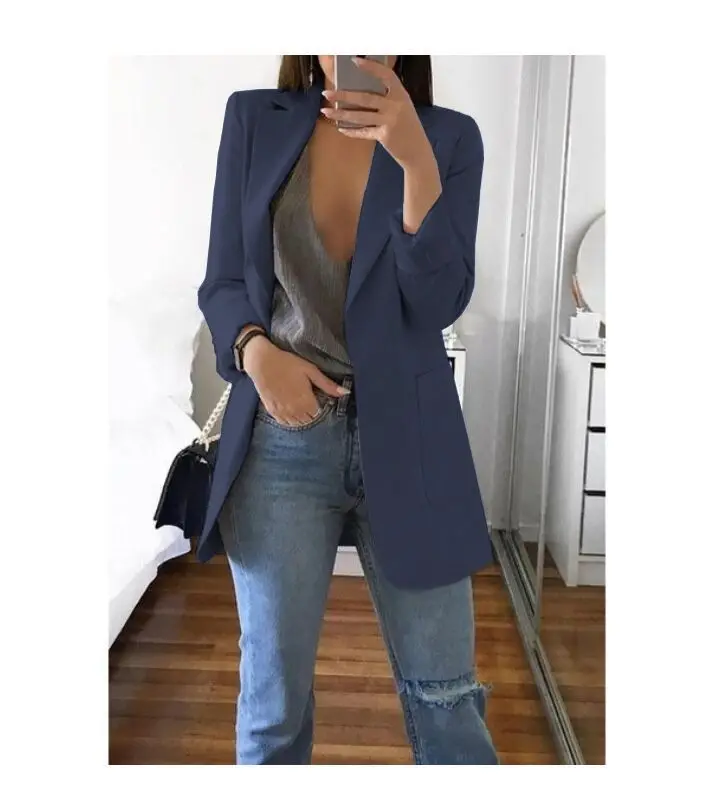 Autumn And Winter Women’s Fashion Solid Color Polo Neck Slim Fit Coat Elegant Women’s Long Sleeve Pocket Casual Suit Coat S-3XL