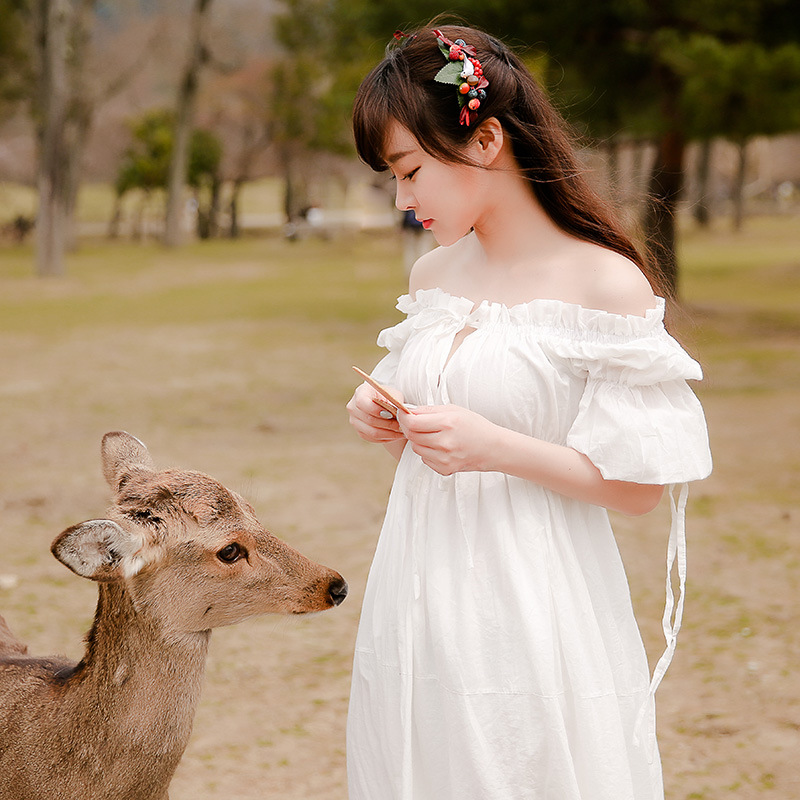 M Dress length 128cm, Bust 89cm, Waist 60-80cm, Sleeve Length 48cm
