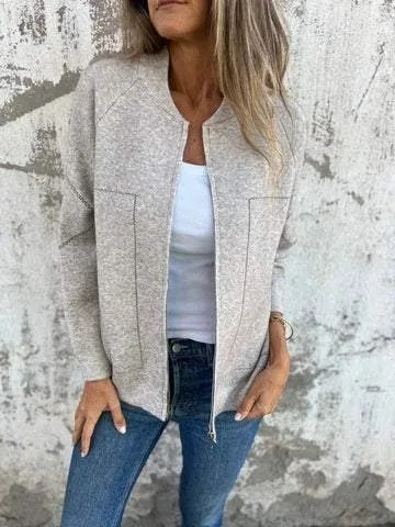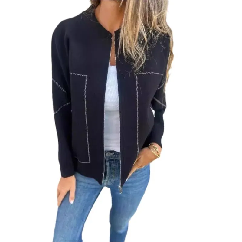 Fashion Solid Zipper Women‘s Jacket Casual Loose O-neck Long Sleeve Pockets Coats Female 2024 Autumn Winter Harajuku Outerwears