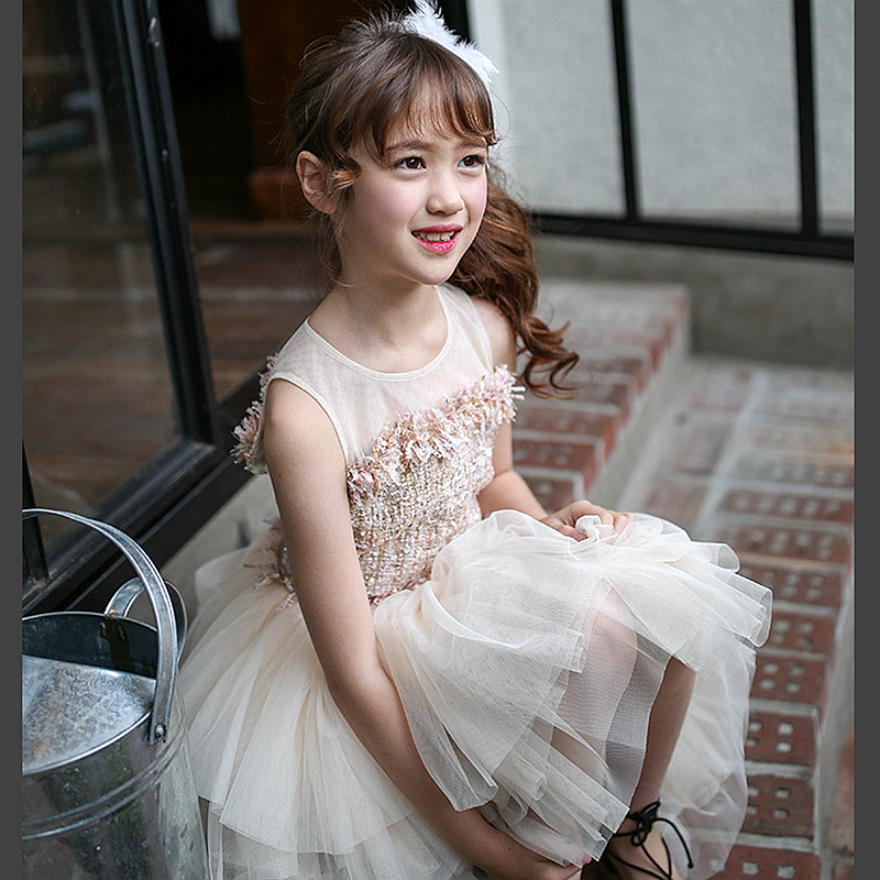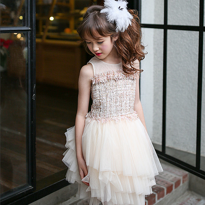 girls party Full dress kids 2020 summer sleeveless lace girl princess wedding dress apricot prom gowns 7 – 12y Children clothing