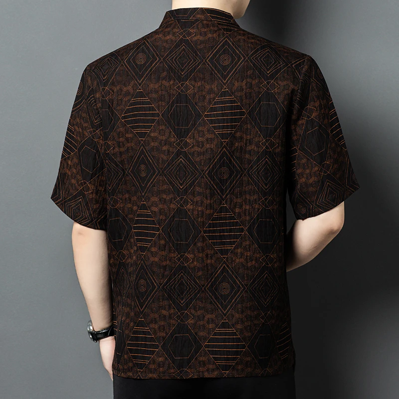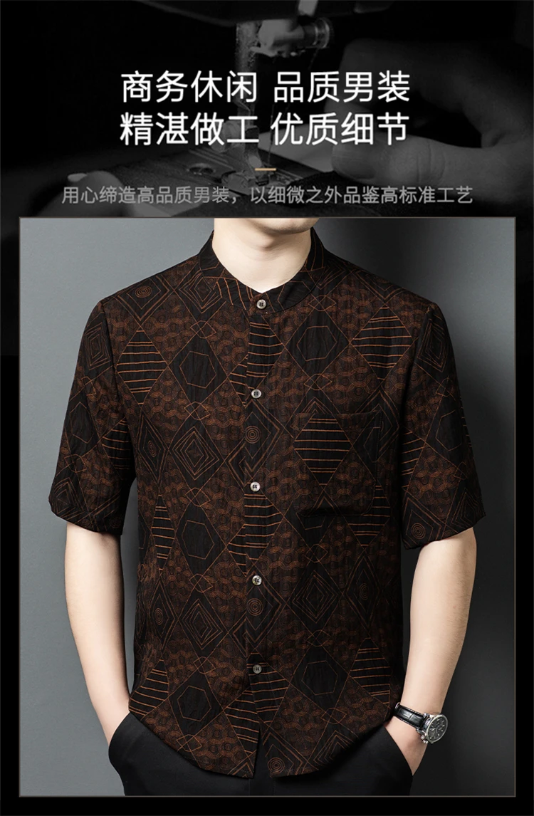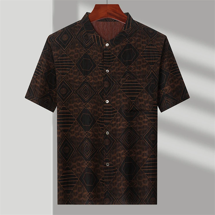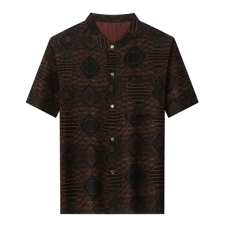 High Cost 100% Silk Brown Shirts For Men National Style Easy Care Summer Gambiered Canton Gauze Smooth Quality Camisas De Hombre