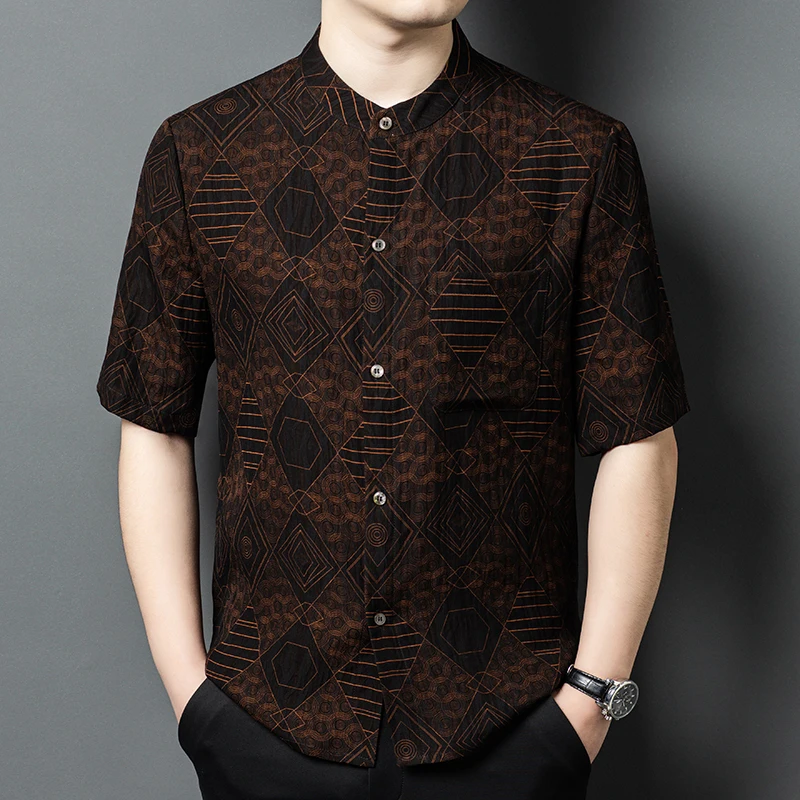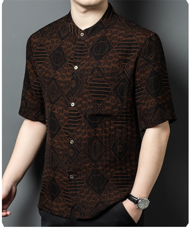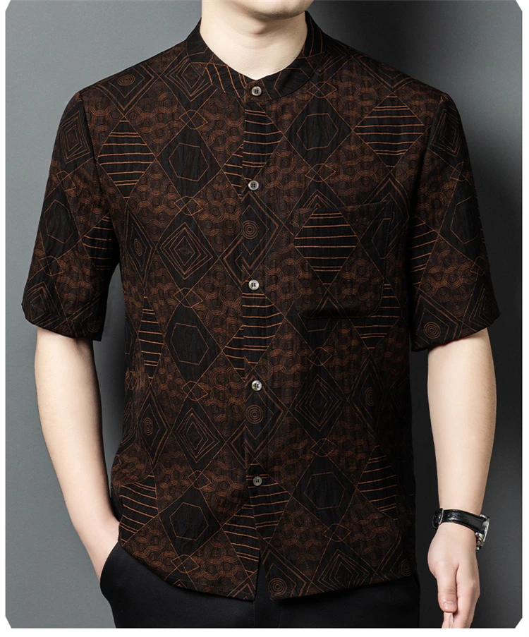 Be the first to review “High Cost 100% Silk Brown Shirts For Men National Style Easy Care Summer Gambiered Canton Gauze Smooth Quality Camisas De Hombre”