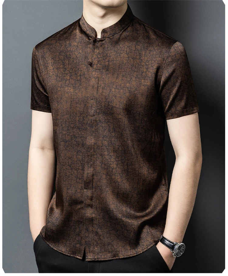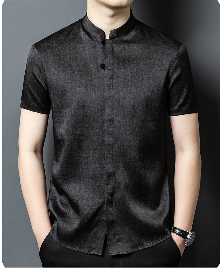 HT3097 High-End Silk Gentleman Shirts For Men Crack Stand Collar Summer Quality Coolness Lightweight Chinese Style Chemise Homme