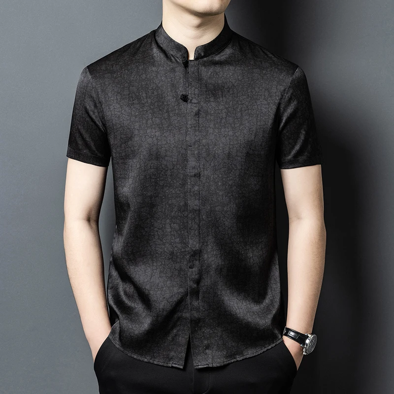 Be the first to review “HT3097 High-End Silk Gentleman Shirts For Men Crack Stand Collar Summer Quality Coolness Lightweight Chinese Style Chemise Homme”
