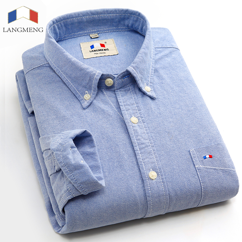 Langmeng 100% cotton free shipping striped shirt men long sleeve 2020 spring casual shirts oxford dress shirts camisa masculina