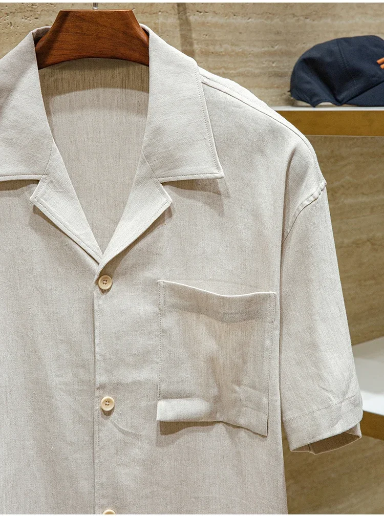 LP version linen blend old money style classic Cuban collar casual short-sleeved shirt