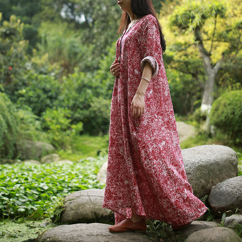 V-Neck, Long Sleeve, Pockets, Maxi Dress, Dress Women, Long Dresses, Mori Girl Style, Beach Dress, Vestidos, Robe Longue, Uzun Elbise, Jurkjes, Linen Dress, Gown, Kaftan |
