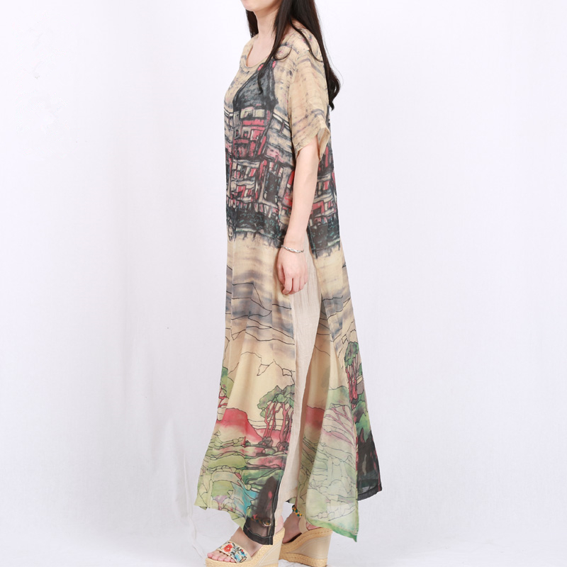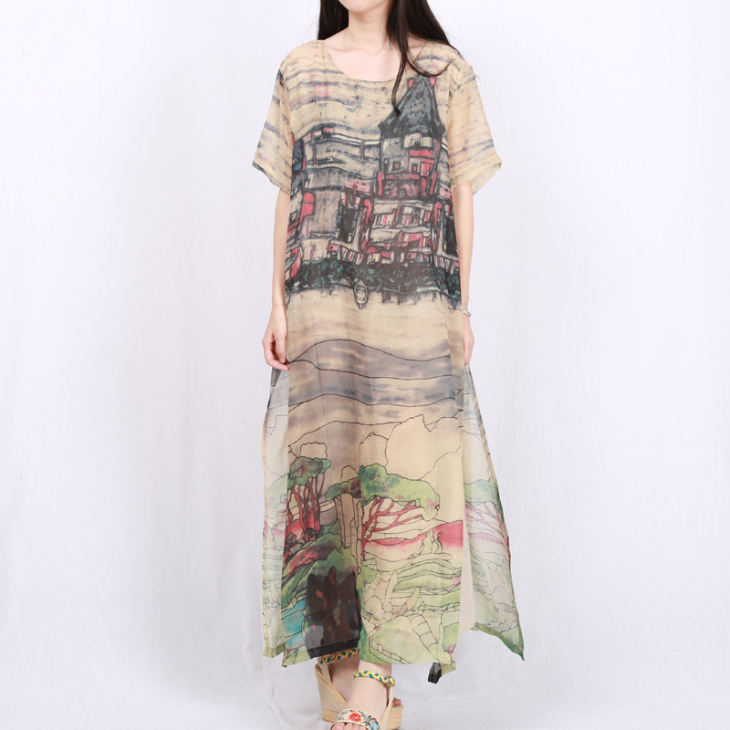 LZJN short sleeve summer vestidos 2020 women long beach dresses fake 2 pieces landscape maxi dress vintage robe longue femme ete