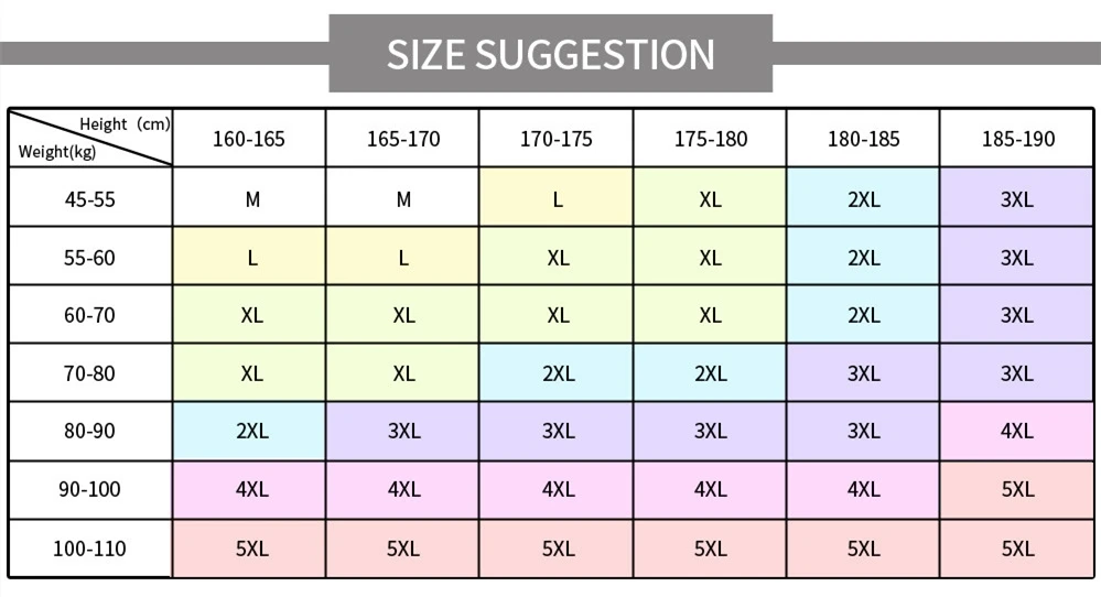 *Everybody’s age, body fat rate and dressing habits are different. Size suggestion are based on most buyer’s choices, only for reference.