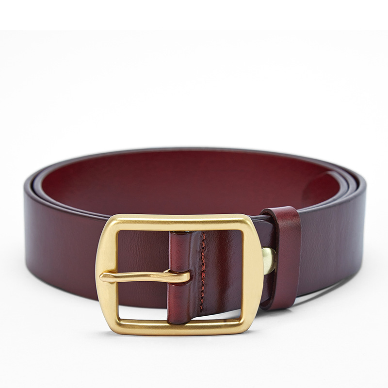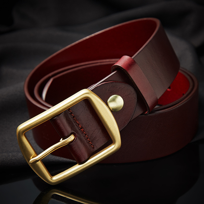 Men’s retro casual belts 3.8cm wide pure copper pin buckles design brand head layer cowhide belt black presents for men