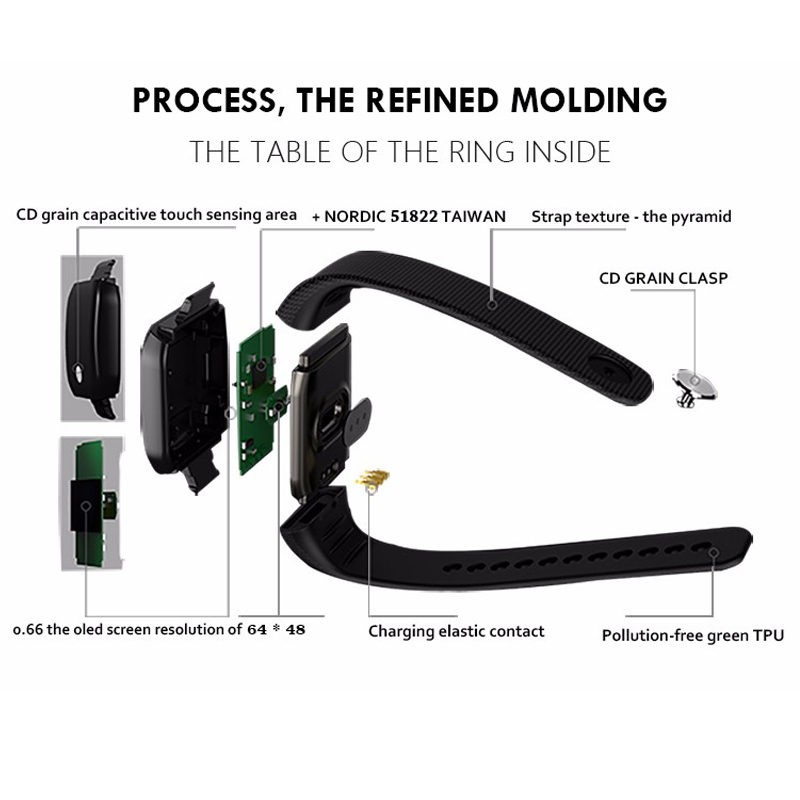 1:Heart rate 2:Blood oxygen 4:Fatigue measurement 5:Sports step counter 6:Energy consumption 7:Daily mileage 8:Sleep monitorin 9:Call ID 10:SMS Reminder 11:APP Reminder 12:Sedentary reminded 13:Alarm clock reminder Kindly Note: For Andriod Phone, OS must be 4.4 or above and Bluetooth must be V4.0 For ios phone, iOS must be 7.0 or above and Bluetooth must be V4.0