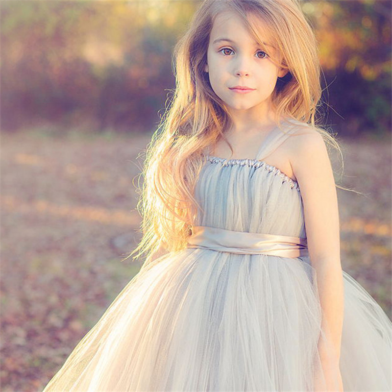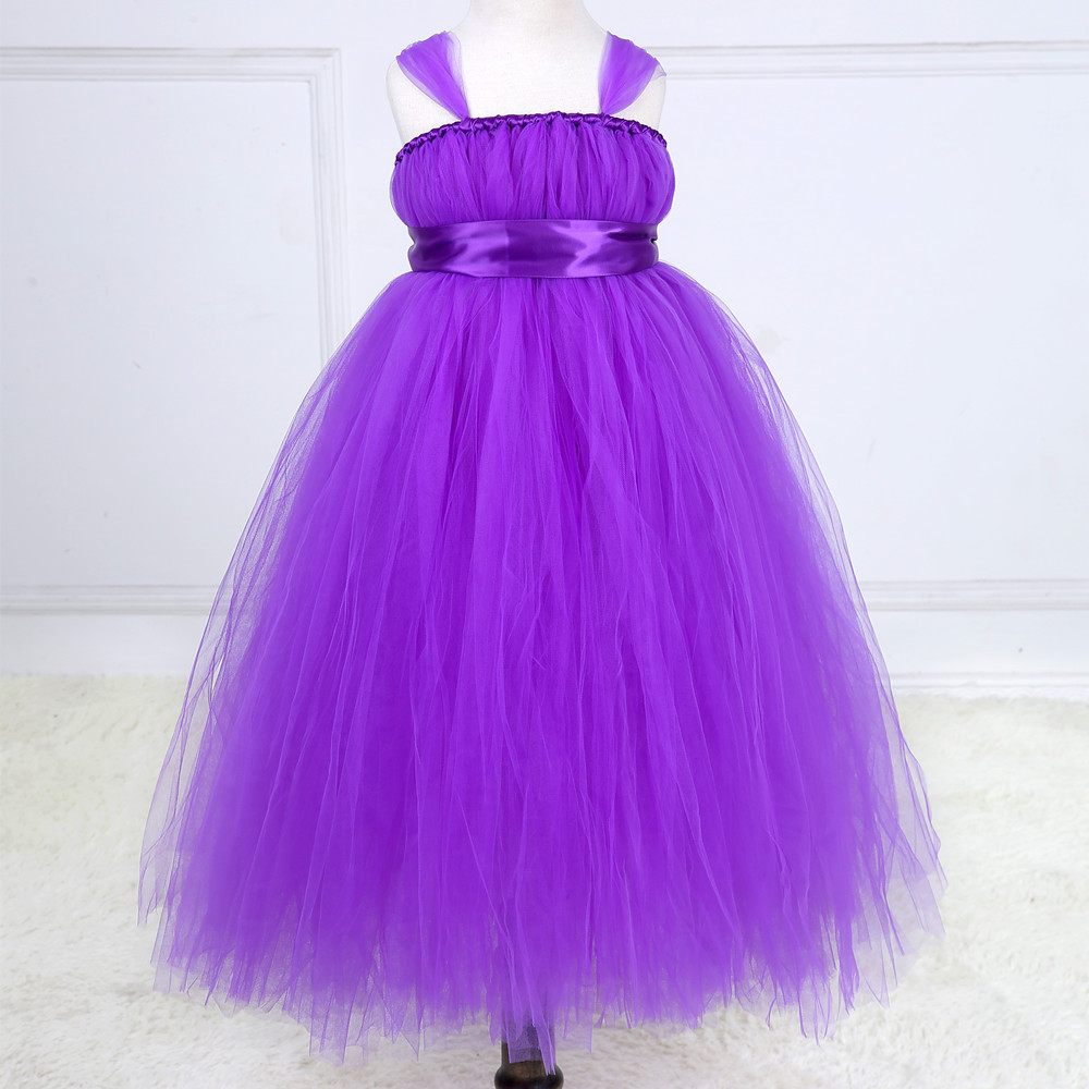 Purple,Gray Flower Girl Dresses Cute Kids Party Pageant Wedding Bridesmaid Bridal Tulle Tutu Dresses Princess Ball Gown 2-14 Y
