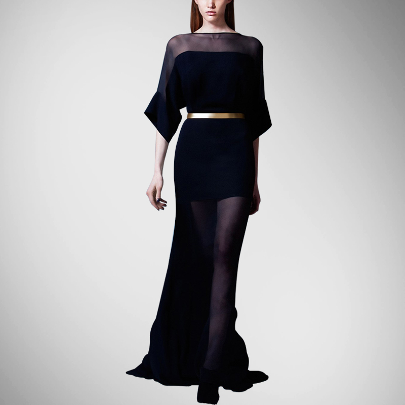 Rushed Natural Sashes Flare Sleeve Solid Half Silk Dresses Women Long Dress The New Summer Bodysuit Womenof High-end Custom