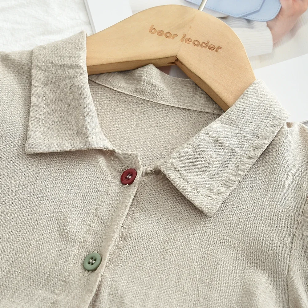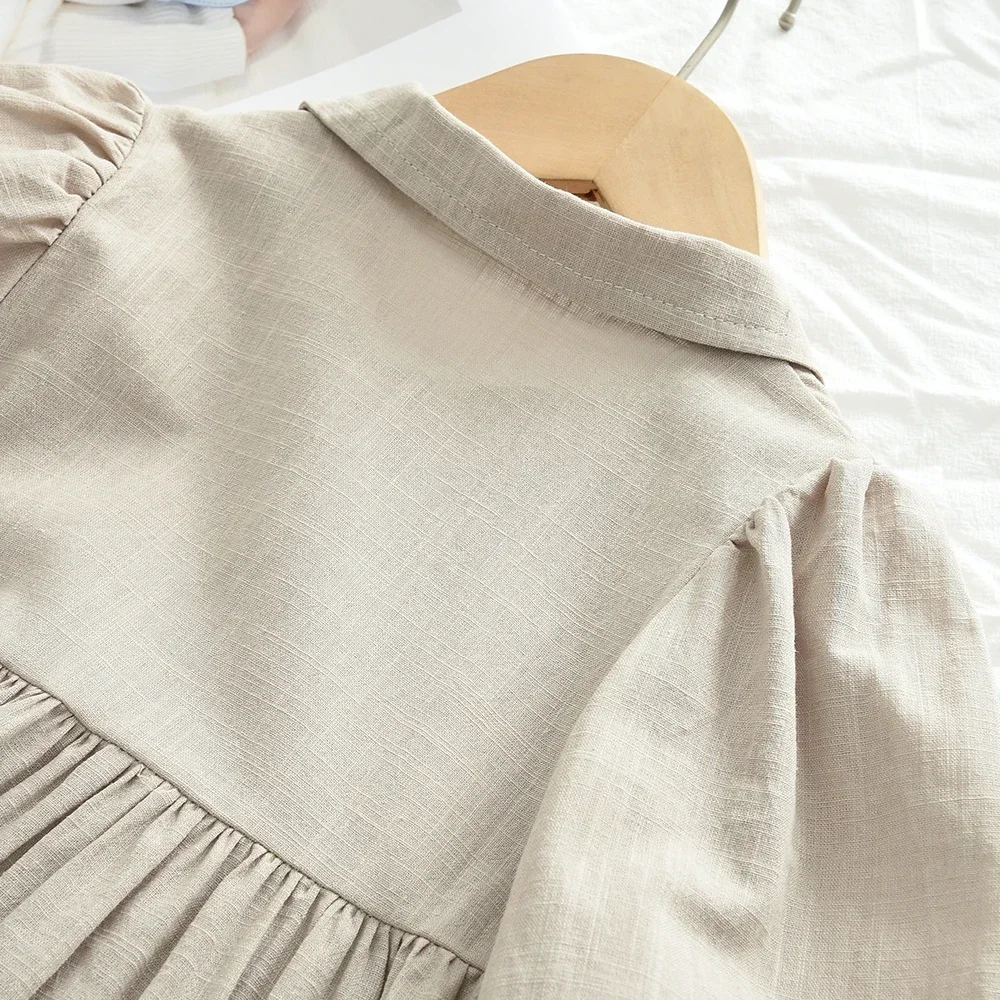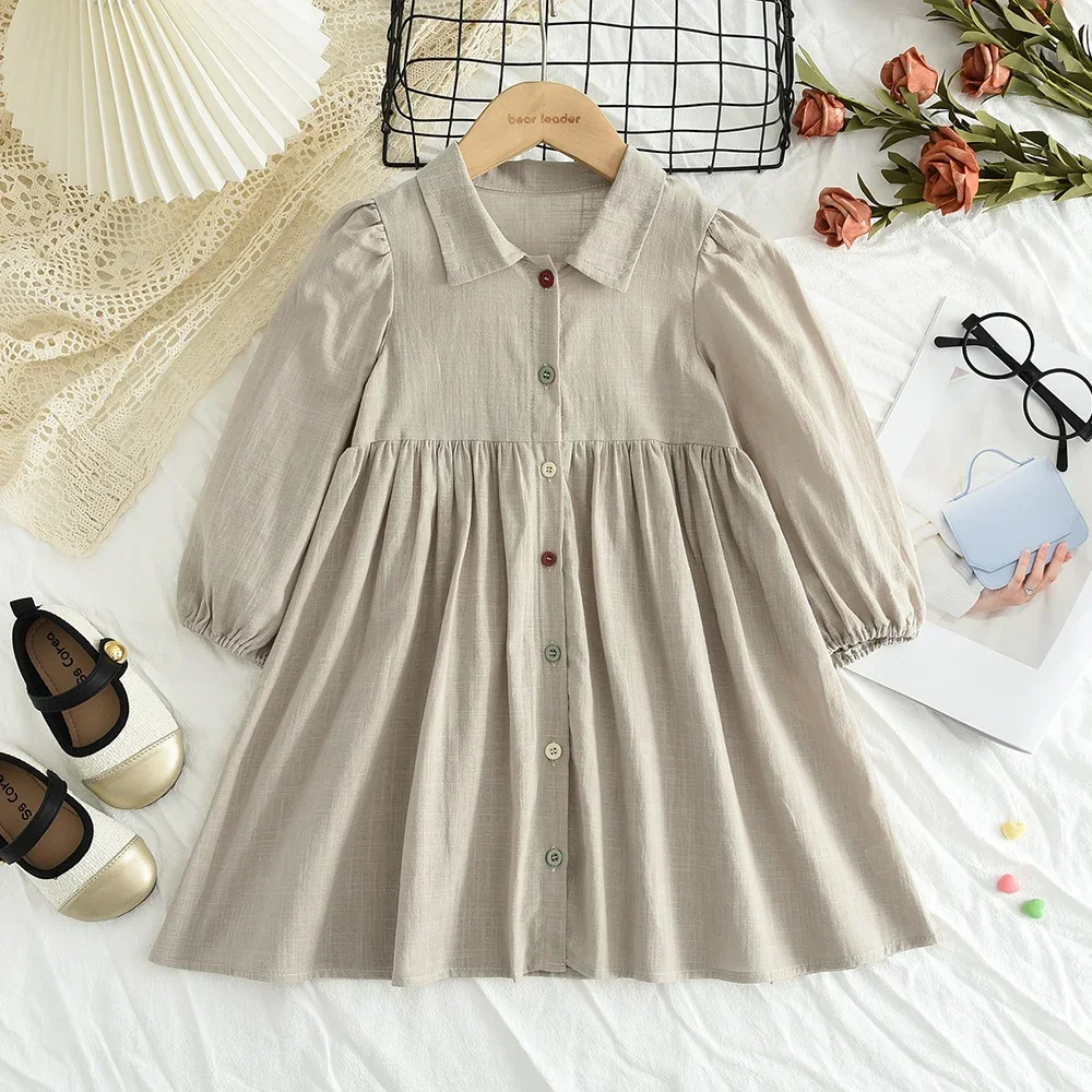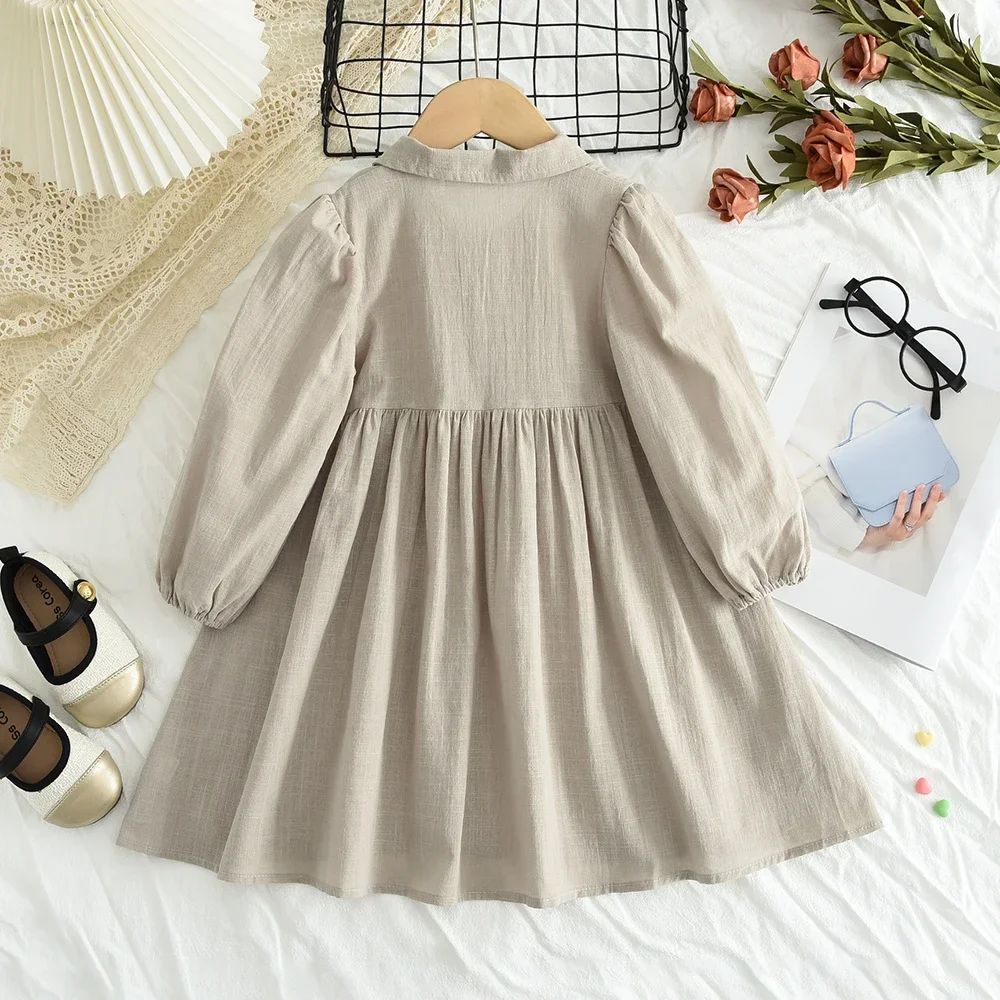 Solid Color Kids Clothes Girls Casual Dresses Flip Collar Single Breasted Shirt Dress Basic Simple Cotton Children’s Wear