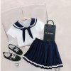Summer Girl Boy Clothing Sets Korean Fashion Toddler Kids Navy School Style Tees Shorts skirt 2pcs Outfit Children Casual Suits