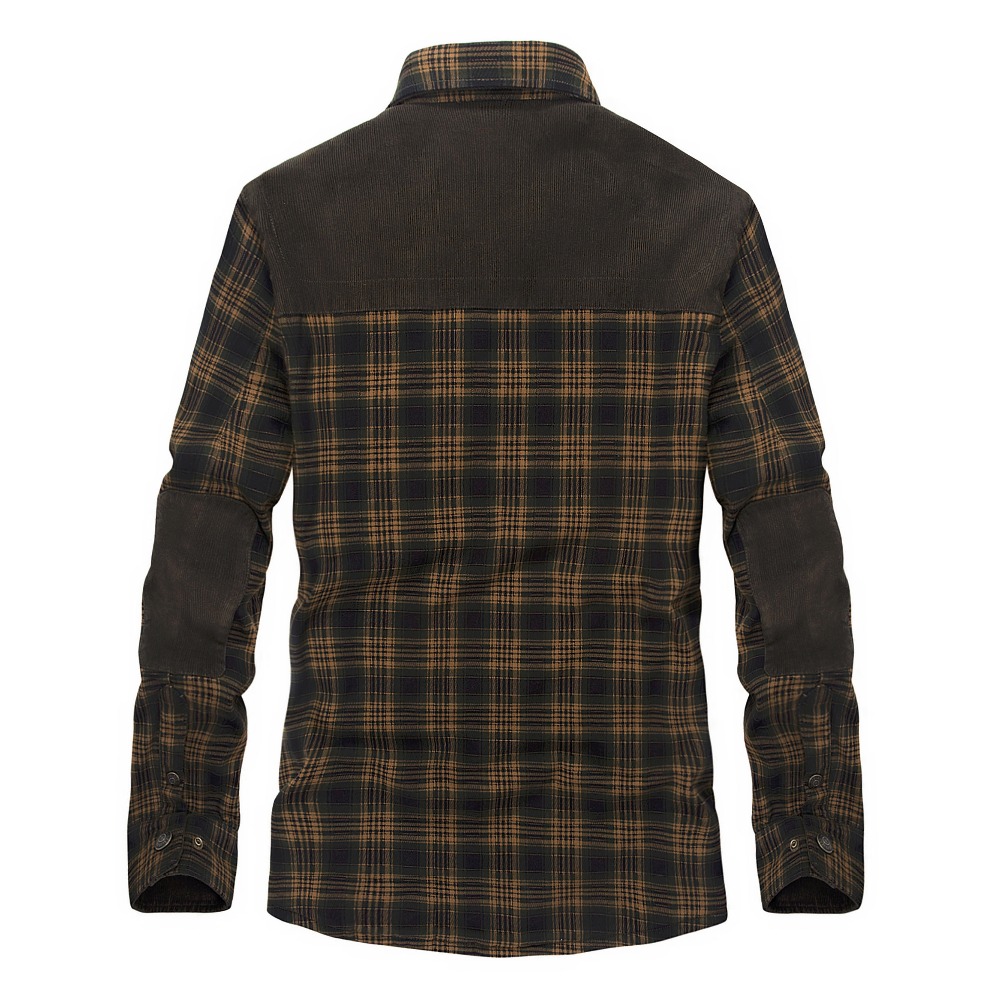 TIGER CASTLE Fleece Men’s Warm Dress Shirts Plaid Long Sleeve Male Social Shirts Cotton Autumn Winter Military Blouse Camisas