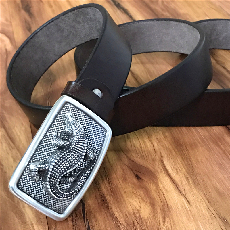 TOP 3D Crocodile Belt Buckle Super Thick Genuine Leather Luxury Cowboy Jeans Belt Wide Ceinture Homme Cinturones Hombre MBT0481