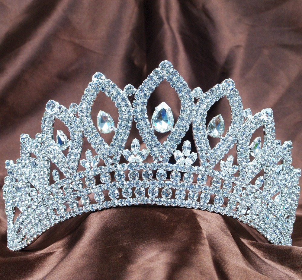 Vintage Silver Tiaras Diadem 3.5" Clear Rhinestones Crystal Bridal Wedding Crowns Pageant Party Headband Hair Jewelry