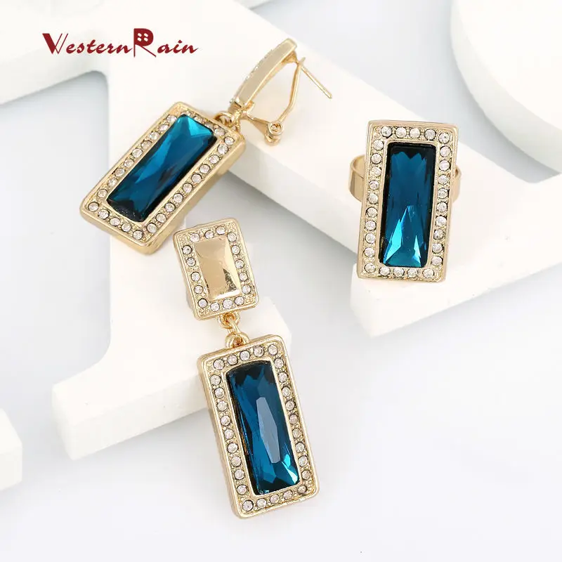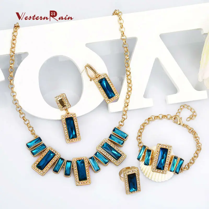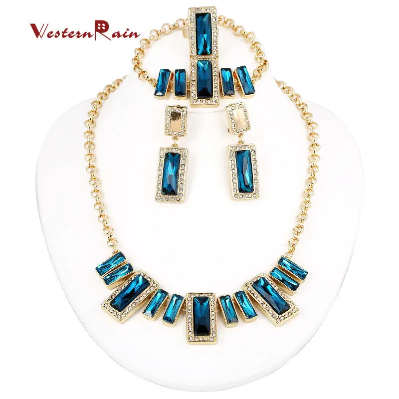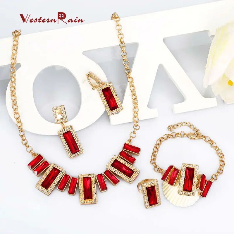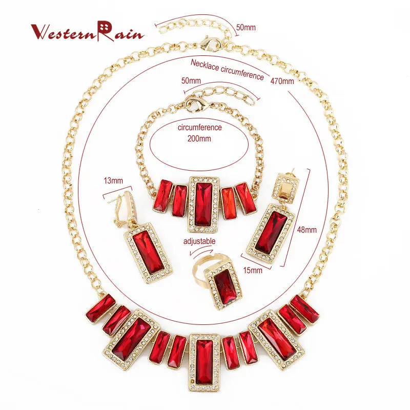 WesternRain Fashion Red/Blue Crystal Rhinestone African Beads Bridal Wedding Prom Party Jewelry Set US Statement Jewelry