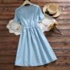 Be the first to review “Women’s Rabbit Embroidery Blue Cotton Dress”