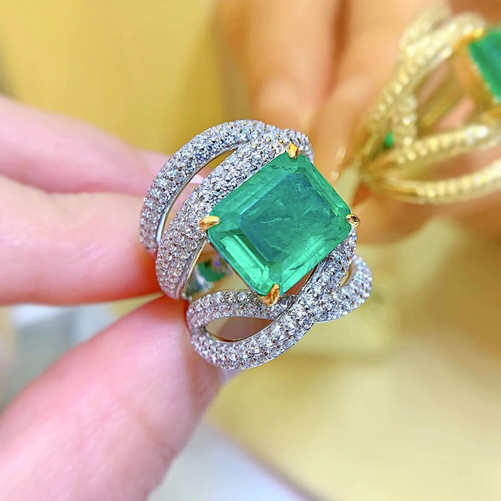 Wong Rain Luxury Vintage 925 Sterling Silver 5CT Created Moissanite Emerald Gemstone Party Ring For Women Fine Jewelry Wholesale
